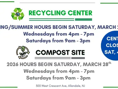 The March 26, 2026 meeting of the Mayor and Council of the Borough of Allendale will be held in-person at the Allendale Municipal Building, 500 West Crescent Avenue, Allendale, New Jersey 07401. The Work Session will begin at 7:00 p.m., immediately followed by the Regular Session in the Council Chambers located on the second floor. The Borough of Allendale will also livestream the Work and Regular Sessions.