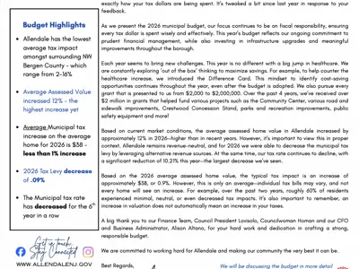 News PostAs we present the 2026 municipal budget, our focus continues to be on fiscal responsibility, ensuringevery tax dollar is spent wisely and effectively. This year’s budget reflects our ongoing commitment to prudent financial management, while also investing in infrastructure upgrades and meaningful improvements throughout the borough.