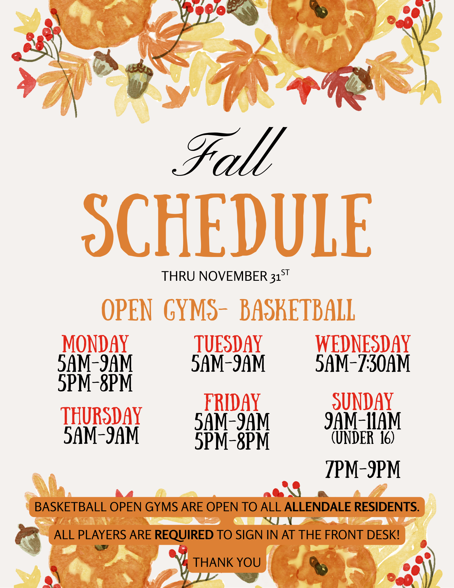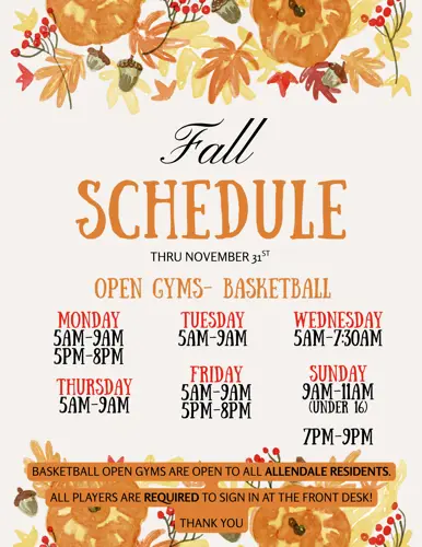 For those residents who are looking for organized open gyms and pickleball, please see details under Organized Gyms & Pickleball below.