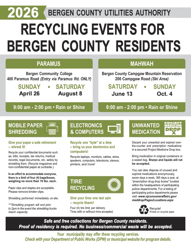 Bergen County Utilities Authority (BCUA) Recycling Events